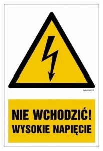 ZNAK ‑ HA026 Nie wchodzić wysokie napięcie 7,5 x 10 cm FN ‑ Folia samoprzylepna