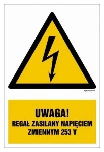 ZNAK ‑ HA027 Uwaga regał zasilany napięciem zmiennym 253 V 20 x 30 cm FN ‑ Folia samoprzylepna