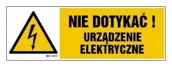 Znak „Nie dotykać! Urządzenie elektryczne” jest znakiem ostrzegawczym, który jednoznacznie wskazuje na niebezpieczeństwo wynikające z bezpośredniego kontaktu ze wskazanym urządzeniem. Nieprzestrzeganie zasad może skutkować poważnym uszkodzeniem ciała i naruszeniem zdrowia. Znak „Nie dotykać! Urządzenie elektryczne” powinno znaleźć się na urządzeniu lub możliwie jak najbliżej niego, w widocznym miejscu. Tablica składa się z dwóch elementów – znaku ostrzegawczego w kształcie trójkąta z żółtym tłem oraz czarnym obramowaniem i piktogramem błyskawicy oraz napisu „Nie dotykać! Urządzenie elektryczne”. Występuje w wielu rozmiarach do wyboru: • 10 x 3,3 cm• 15 x 5 cm• 20 x 6,7 cm• 30 x 10 cm • 45 x 15 cmZnak „Nie dotykać! Urządzenie elektryczne” może być wykonany na folii samoprzylepnej lub płycie sztywnej.