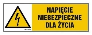 Tabliczka /znak ostrzegawczy/ TZO 74X105S /POD NAPIĘCIEM/ E04TZ-01011120800 /10szt./
