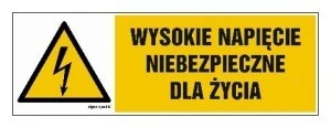 ZNAK ‑ HB004 Wysokie napięcie niebezpieczne dla życia ‑ arkusz 8 naklejek ‑ arkusz 8 naklejek 10 x 3,3 cm FN ‑ Folia samoprzylep