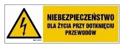 ZNAK ‑ HB007 Niebezpieczeństwo dla życia przy dotknięciu przewodów 45 x 15 cm FN ‑ Folia samoprzylepna