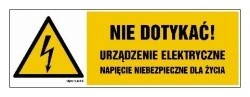 ZNAK ‑ HB022 Nie dotykać urządzenie elektryczne napięcie niebezpieczne dla życia 30 x 10 cm PN ‑ Płyta 1mm