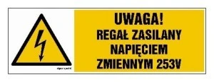 ZNAK ‑ HB025 Uwaga regał zasilany napięciem zmiennym 253 V 15 x 5 cm PN ‑ Płyta 1mm