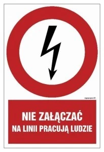 ZNAK ‑ HC011 Nie załączać na linii pracują ludzie 15 x 22,5 cm PN ‑ Płyta 1mm