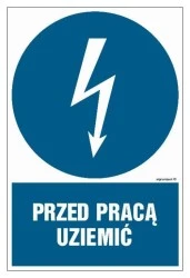 ZNAK ‑ HE005 Przed pracą uziemić 30 x 45 cm PN ‑ Płyta 1mm