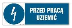 ZNAK ‑ HF005 Przed pracą uziemić ‑ arkusz 8 naklejek ‑ arkusz 8 naklejek 10 x 3,3 cm FN ‑ Folia samoprzylepna