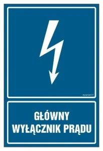 Samoprzylepna tabliczka ostrzegawcza /GŁÓWNY WYŁĄCZNIK PRĄDU 52X74/ 20EIA/Q1/F