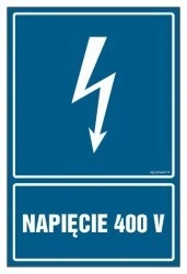 ZNAK ‑ HG022 Napiecie 400 V 7,5 x 10 cm FN ‑ Folia samoprzylepna