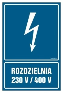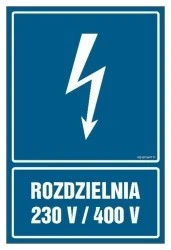 ZNAK ‑ HG027 Rozdzielnia 230V/440V 7,5 x 10 cm PN ‑ Płyta 1mm