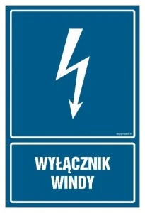ZNAK ‑ HG037 Wyłącznik windy 25 x 37,5 cm PN ‑ Płyta 1mm