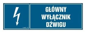 ZNAK ‑ HH023 Główny wyłącznik dźwigu 30 x 10 cm FN ‑ Folia samoprzylepna