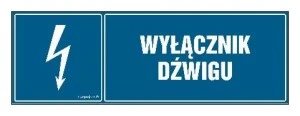 ZNAK ‑ HH025 Wyłącznik dźwigu 45 x 15 cm FN ‑ Folia samoprzylepna