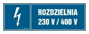 ZNAK ‑ HH028 Rozdzielnia 230 V/400 V 30 x 10 cm PN ‑ Płyta 1mm