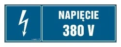 ZNAK ‑ HI001 Napięcie 380 V 15 x 5 cm PN ‑ Płyta 1mm