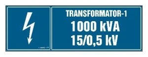 ZNAK ‑ HI003 Transformator‑1 1000kVA 15/0.5 kV ‑ arkusz 8 naklejek ‑ arkusz 8 naklejek 10 x 3,3 cm FN ‑ Folia samoprzylepna