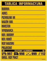 ZNAK - OA088 Tablica budowlana informacyjna (kolorowa) 70 x 90 cm BN - Płyta żółta 0,6mm