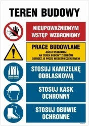 ZNAK ‑ OI008 Teren budowy, Nieupoważnionym wstęp wzbroniony, Prace budowlane, Jeżeli wchodzisz na teren budowy z 70 x 105 cm PN