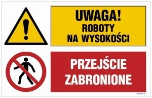 ZNAK ‑ OI039 Uwaga! roboty na wysokości, Przejście zabronione 70 x 46,7 cm ON ‑ Blacha ocynk