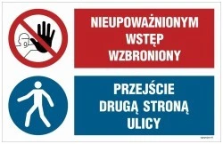 ZNAK - OI033 Teren budowy, Uwaga! głębokie wykopy, Przejście zabronione, Przejście drugą stroną ulicy 70 x 70 cm PN - Płyta 1mm