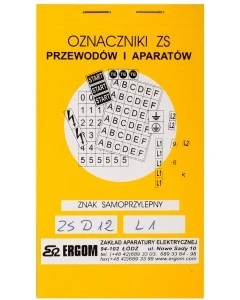 Znaki samoprzylepne pochodzą z serii ZS, której produkty mają zastosowanie w indentyfikacji kabli, przewodów i wiązek. Oznaczniki zostały wykonane z folii PCV i są wykorzystywane w elektrotechnice do znakowania przewodów fazowych.