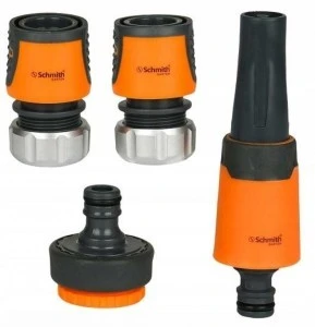 Zestaw z dyszą prostą oraz szybkozłączami o średnicy 3/4 do samodzielnego i bezproblemowe zamontowaniu na wężu ogrodniczym bez dodatkowych elementów
