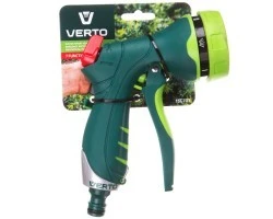 Zraszacz pistoletowy 7-funkcyjny VERTO (nr ref. 15G707). Pistolet został wyposażony w funkcje regulacji strumienia wody, która pozwoli dopasować jego moc do wykonywanej czynności. Czytelne oznaczenia ułatwiają wybór odpowiedniego rodzaju strumienia. Pistolet posiada blokadę przedniej dźwigni dzięki czemu może pracować w trybie ciągłym. Uchwyt o ergonomicznym kształcie dobrze leży w dłoni i nie wyślizguje się, co podnosi komfort pracy.