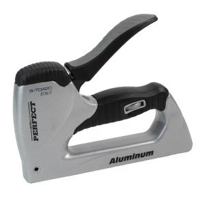 Zszywacz aluminiowy przeznaczony jest do łączenia materiałów za pomocą jednorazowych zszywek. Ma bardzo uniwersalne zastosowanie, jednak polecany jest do prac tapicerskich. Sprawdzi się w profesjonalnych zakładach i warsztatach, gdzie prace prowadzone są z dużą intensywnością. Zszywacz aluminiowy STALCO PERFECT jest bardzo lekki. Niską wagę zawdzięcza obudowie aluminiowej. Jednocześnie ten materiał zapewnia mu odporność na uszkodzenia mechaniczne i korozję. Narzędzie ma regulacje siły wbijania, dlatego łatwo można dopasować jego funkcjonalność do charakteru prowadzonych prac. Rączka jest pokryta miękkim elastycznym materiałem, co zwiększa komfort pracy. Narzędzie może obsługiwać zszywki STALCO typu A i T oraz gwoździe typu I.