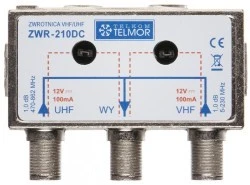 Zwrotnica ZWR-210DC (2 wejścia) stosowana jest jako element sumujący sygnały z pasma FM/VHF oraz UHF.