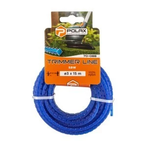 Żyłka tnąca „Saw” to wyjątkowo mocna żyłka służąca do koszenia trawy. Wykonane z wysokiej jakości nylonu. Posiada wysoką elastyczność, wytrzymałość i odporność na zużycie. Żyłka ma kształt ząbkowanego kwadratu. Specjalny profil w kształcie piły nadaje się do cięcia grubej roślinności i umożliwia cięcie nawet trzcin. Przeznaczenie: sucha trawa, małe krzewy, łopian. Profil piły zapewnia niski poziom wibracji i hałasu. Grubość linii dobierana jest zgodnie z parametrami trymera.