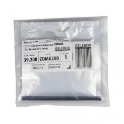 Żywica GELEBOX to dwuskładnikowy, trwały poliuretan, przeznaczony do uszczelniania połączeń kabli i przewodów w puszkach, mufach oraz głowicach kablowych. Dzięki zastosowaniu tej żywicy w puszkach i mufach uzyskuje się szczelność na poziomie IP68, co pozwala na ich trwałe zakopanie w ziemi lub zanurzenie w wodzie. Produkt jest dedykowany do kabli i przewodów niskonapięciowych do 1 kV, a także kabli telekomunikacyjnych i sygnalizacyjnych z izolacją i osłoną z tworzyw sztucznych. Żywica jest nieusuwalna.
